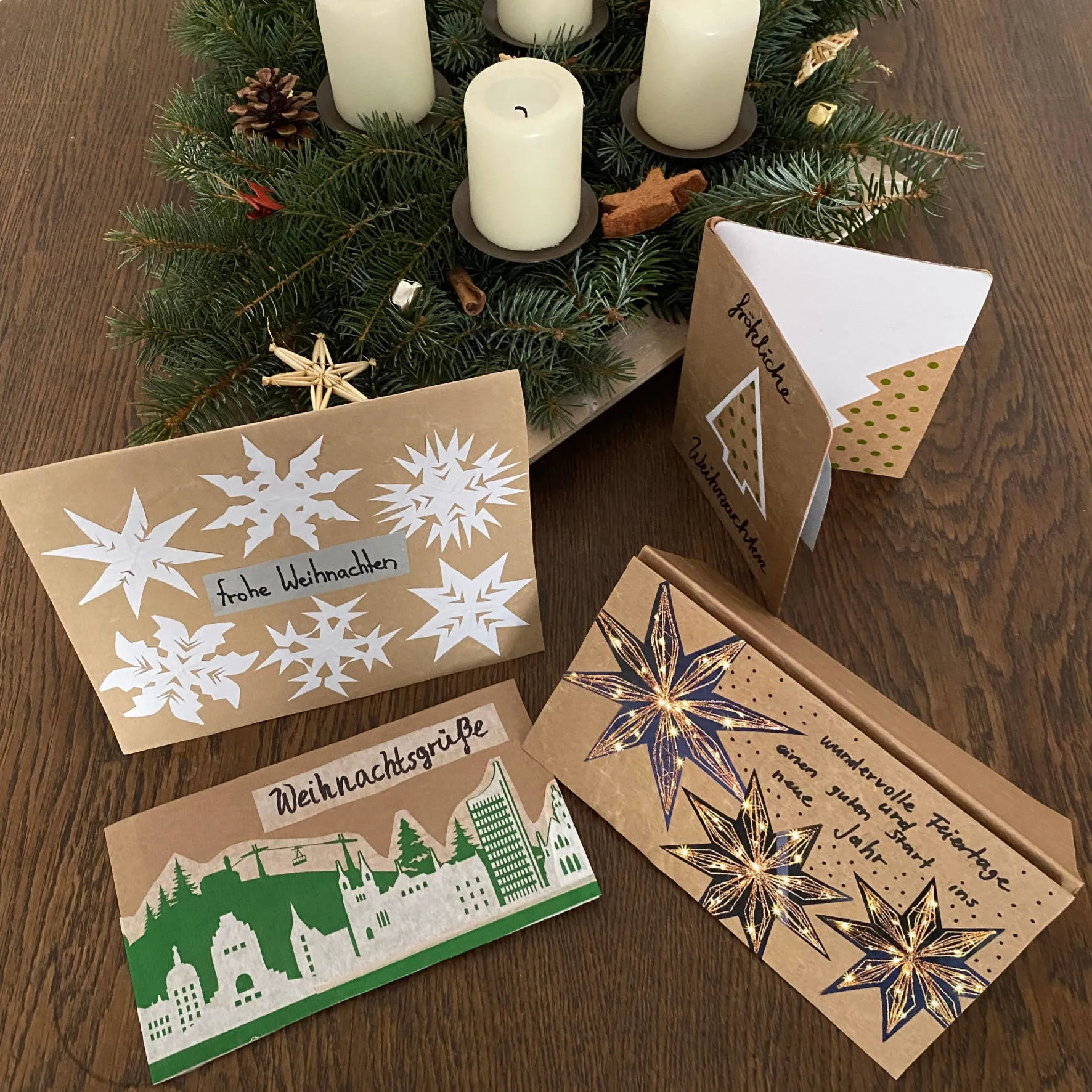 Was werden Sie in 20 Jahren eher auf dem Dachboden finden – liebe Briefe oder Messenger-Nachrichten? Ganz in diesem Sinne: Schreiben Sie doch mal wieder eine Karte. Gerade in der Advents- und Weihnachtszeit freut sich jede/-r über ein paar aufmerksame Worte. Wie Sie mit selbstgemachten Karten aus Altpapier richtig Eindruck machen können, sehen Sie hier im Adventsbasteln Teil 3:
