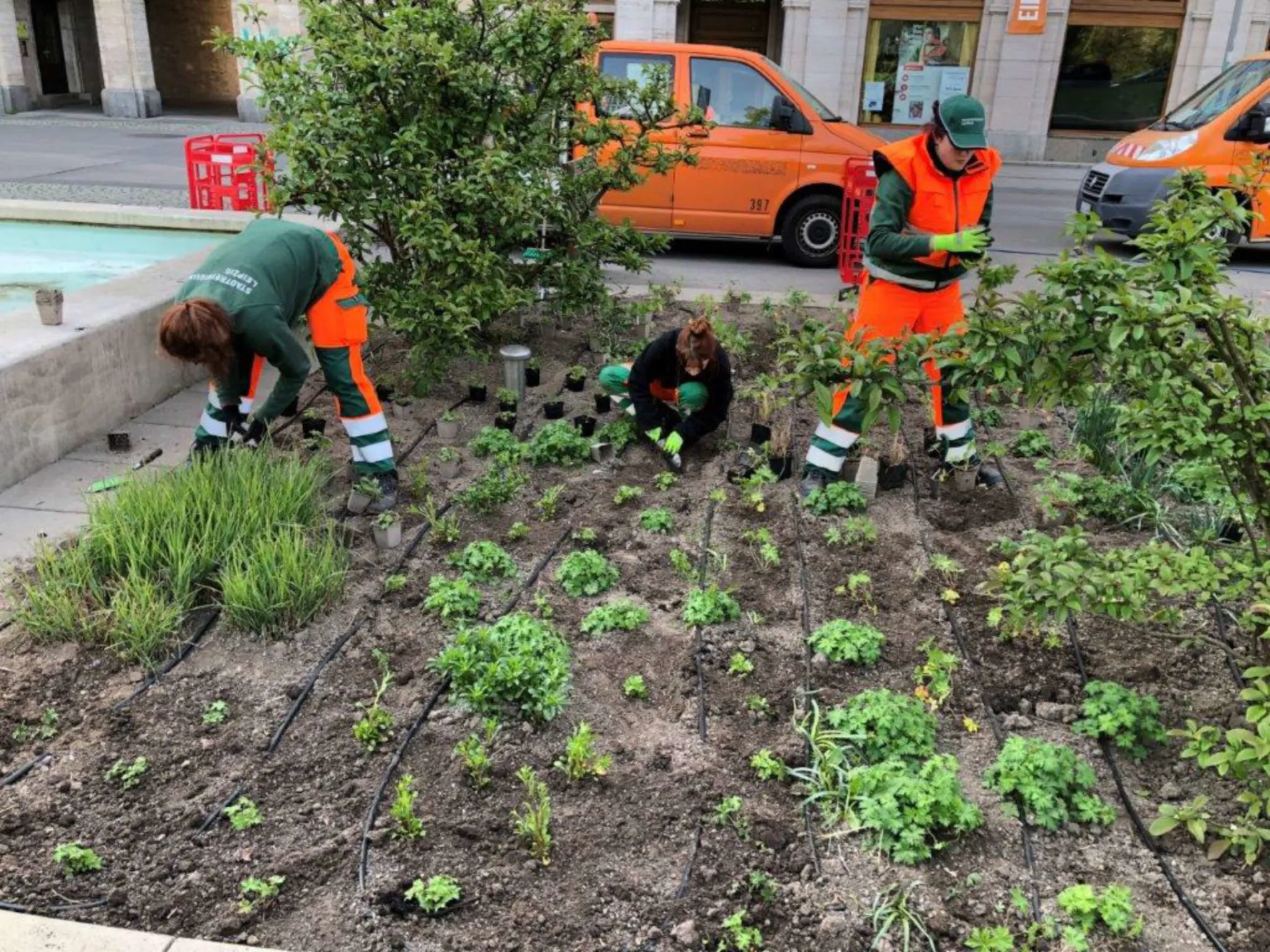 Damit es um die Brunnenanlage am Roßplatz herum bald wieder prächtig blüht und wächst, haben unsere Auszubildenden die Bewässerungsanlage ertüchtigt. Dafür legten sie die Anschlüsse der Tröpfchenbewässerung frei. Nach ausführlicher Einweisung schlossen die Auszubildenden die Anlage eigenständig an und waren sehr stolz auf ihre Leistung. Anschließend wurde gemeinsam mit unseren Kolleg/-innen der Weg überarbeitet und die gesamten Flächen aufgelockert. Nach dem Ausbringen fehlender Erde pflanzten die Auszubildenden Stauden in den Beeten nach. Alle Arbeitsschritte wurden ohne Mängel abgenommen, was zu leuchtenden Augen aller Beteiligten führte. Im nächsten Schritt wird das zerfahrene Rasenstück erneuert.