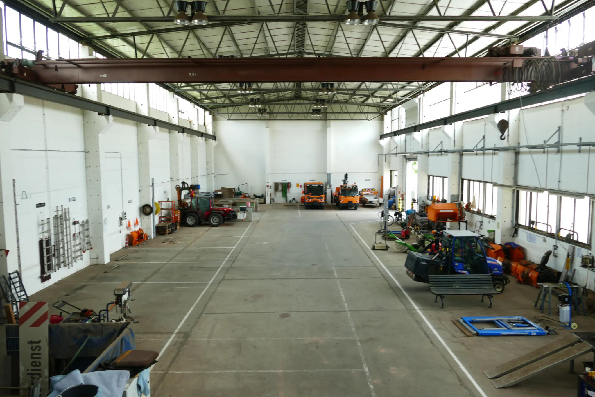 In Liebertwolkwitz/Holzhausen kümmern sich die 7 Mitarbeiter/-innen um eine Fläche von knapp 27 Hektar – das entspricht in etwa siebenmal der Fläche des Augustusplatzes. Die Technik für Grünschnitt, Laubbeseitigung, Winterdienst und die Leerung der Papierkörbe lagert in der Halle des Betriebsgeländes. Das Gelände eines ehemaligen Herstellers für Förderbänder wurde 1993 von der Stadt übernommen und erhielt 2010 einen umfangreichen Umbau. Seitdem ist für die Kolleg/-innen alles vorhanden, was sie brauchen. Kleines Extra: Dank der eigenen Werkstatt und dem noch erhaltenen Hallenkran können die Mitarbeiter/-innen kleine Reparaturen am Werkzeug und Fuhrpark selbst durchführen.