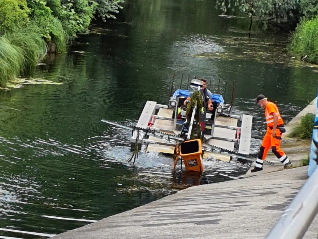 Wir danken den Usern Matthias und Thomas, die den Fund von Abfallbehälter und Kette meldeten und der Firma, die uns bei der Bergungsaktion spontan mit einem Wasserfahrzeug half.