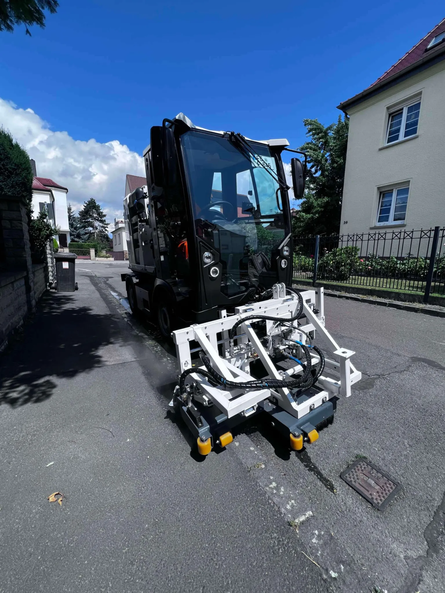 Aktuell testen wir ein elektrisches Trägerfahrzeug, das uns bei der manuellen Straßenreinigung unterstützt. Mit seiner Heißwassertechnik lässt es sich besonders umweltschonend zur Beseitigung von Wildkraut einsetzen. Es ist speziell geeignet für Gehwege sowie Bordsteinkanten. Damit können größere Flächen besonders effektiv bearbeitet werden.
