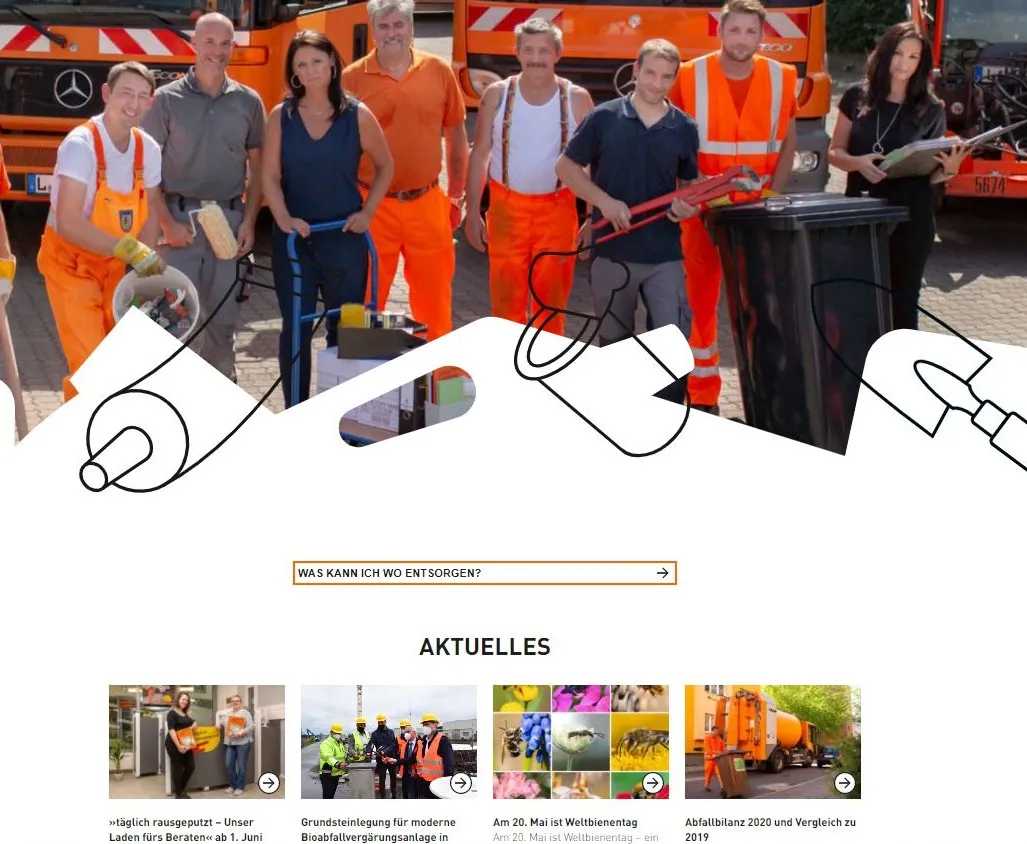Optisch ist die Veränderung auf Anhieb sichtbar: Die integrierten Bilder mit den Mitarbeiterinnen und Mitarbeitern sind ansprechend und geben obendrein einen realistischen Einblick in die Arbeit der Stadtreinigung. Um den Wiedererkennungswert zu gewährleisten, wurden die bekannten Piktogramme aus dem Logo erneut eingebunden.