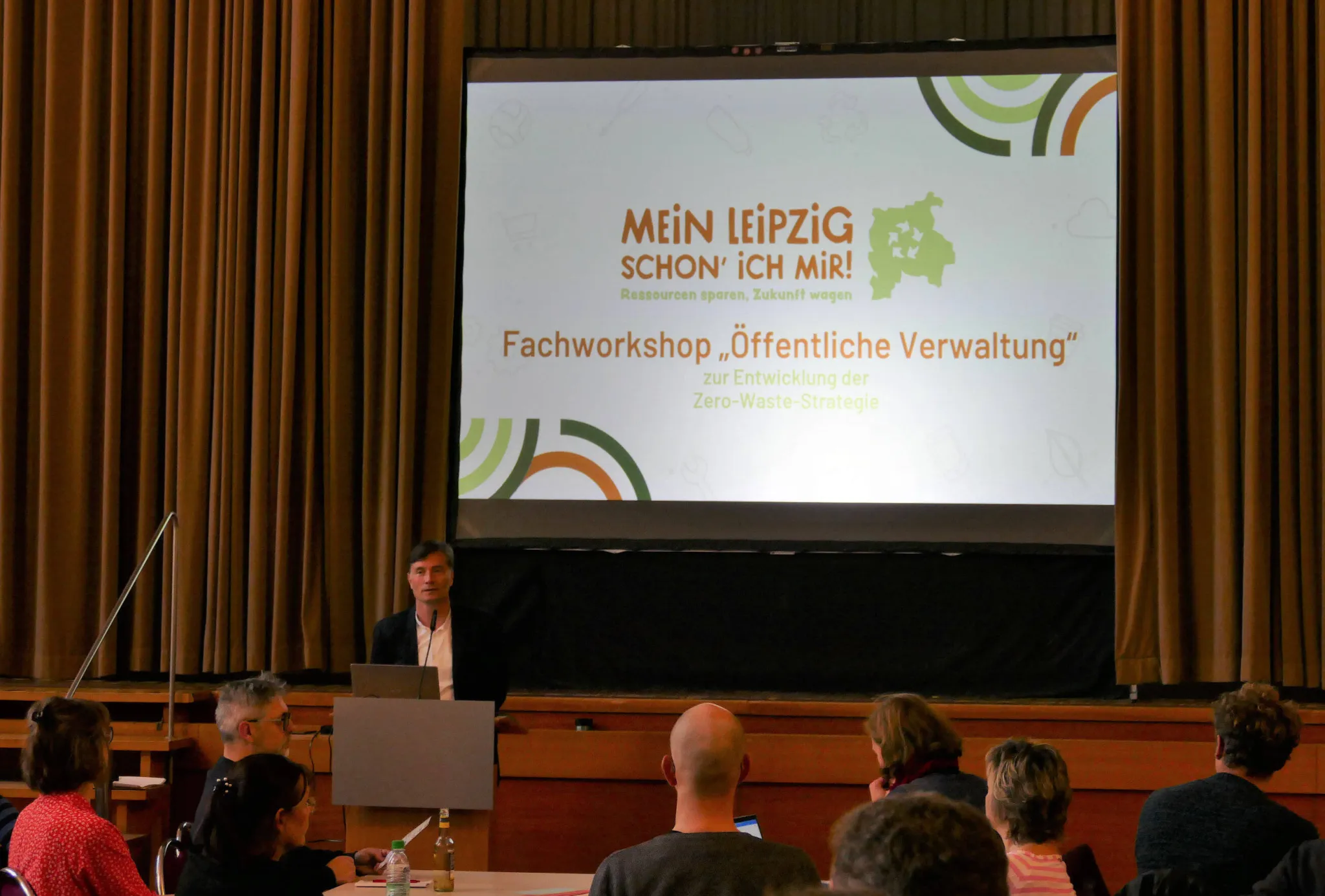 Der letzte Fachworkshop zum Thema „Abfallvermeidung in öffentlichen Verwaltungen“ fand gestern im Festsaal des Neuen Rathauses statt. Mit dabei: Heiko Rosenthal, der als Umweltbürgermeister der Stadt Leipzig den Beginn der Veranstaltung einläutete.