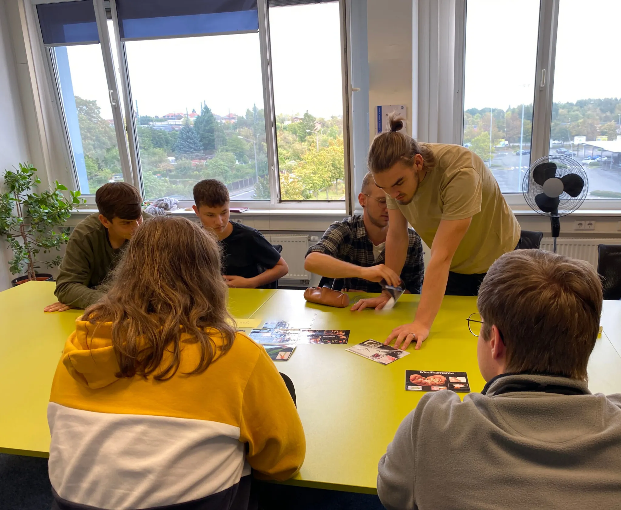 In den verschiedenen Lehrjahren erwartet die Auszubildenden ein Grundlagenseminar zur Thematik Sucht, ein Besuch in einer Leipziger Klinik für Suchtbehandlung und ein Aufbauworkshop, in dem es um Suchtprävention geht.