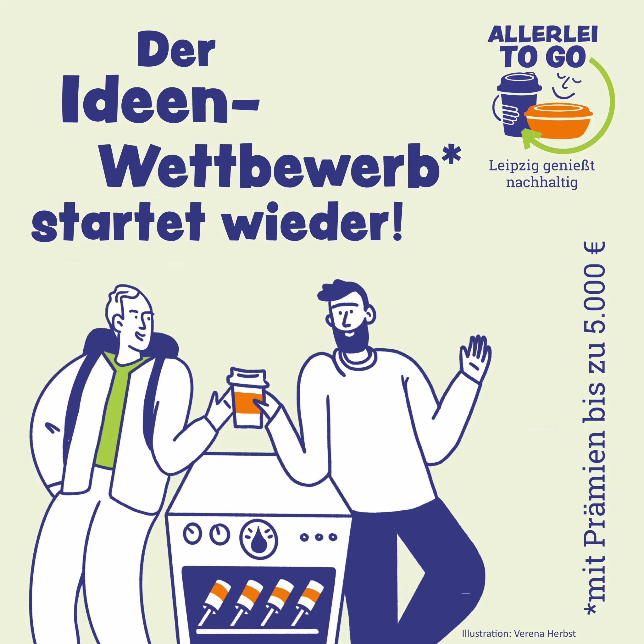 Egal ob Privatperson, zivilgesellschaftliche Initiative oder Betrieb: Sie haben einen Vorschlag, wie die Mehrweg-Nutzung in einem der drei Projektgebiete (Innenstadt, Mockau und entlang der Georg-Schumann-Straße) verbessert werden kann? Dann nehmen Sie am Ideen-Wettbewerb teil und gewinnen Sie im besten Fall 5.000 €. In den beiden Kategorien „Zivilgesellschaft“ und „Betriebe“ winken insgesamt 26.500 € Preisgelder – damit können einige Ideen in die Tat umgesetzt werden.
