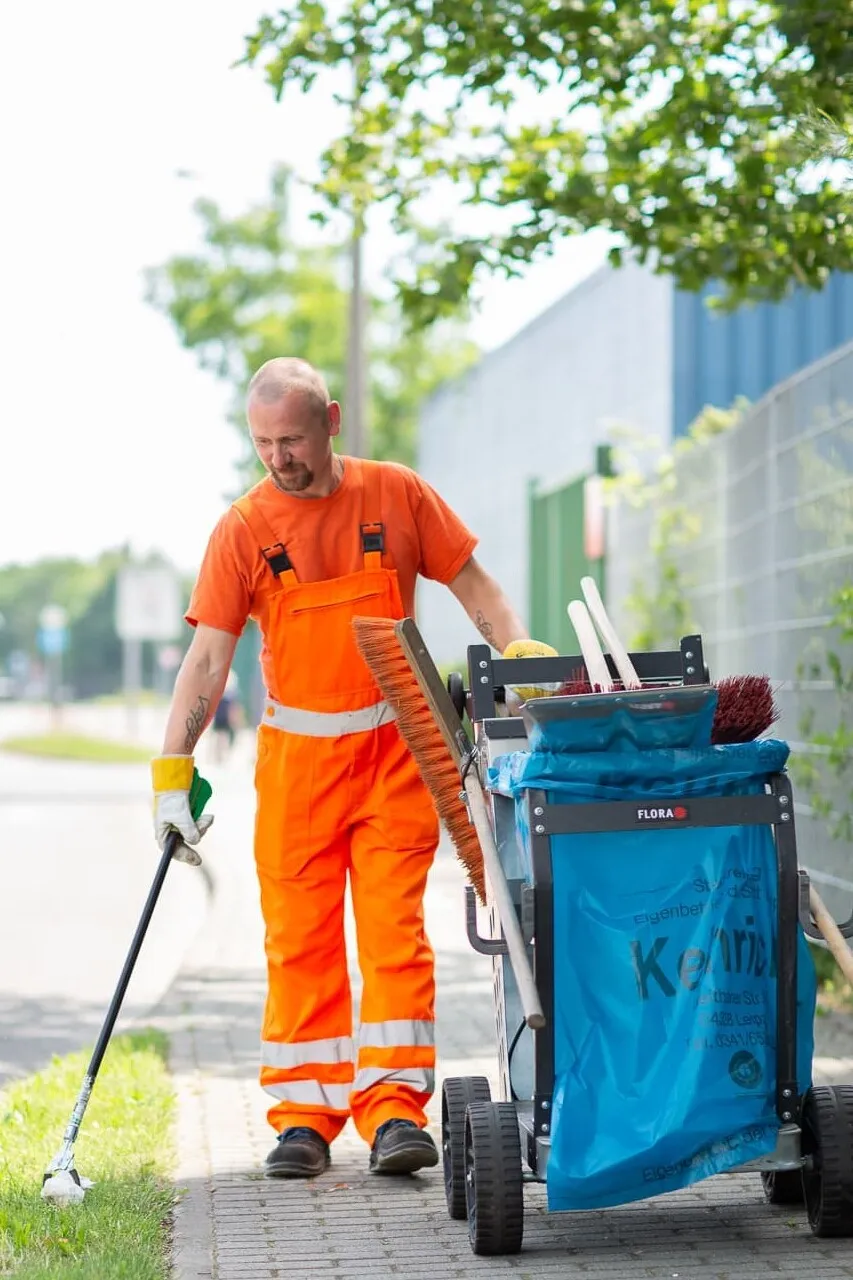 Heute geben Ihnen unsere Kolleginnen und Kollegen der manuellen Straßenreinigung einen Einblick in ihre Arbeit: Punkt 6 Uhr laden sie Postenkarren, akkubetriebene Freischneider und Blasgeräte auf und los gehts. Auf jeder ihrer rund 5 km langen Touren sammeln unsere Mitarbeitenden Müll, Papier, Glasscherben und Hinterlassenschaften von Vierbeiner ein sowie entfernen Laub und Wildwuchs. Sind die Flächen besonders groß, unterstützt das Team der maschinellen Straßenreinigung mit großen Kehrmaschinen. Die Arbeit ist körperlich anstrengend und wetterunabhängig. Am Ende der Schicht stehen noch das fachgerechte Entsorgen der Abfälle sowie die Reinigung der Fahrzeuge an. Danke, Team manuelle Straßenreinigung, dass ihr euch täglich für ein sauberes Leipzig engagiert!