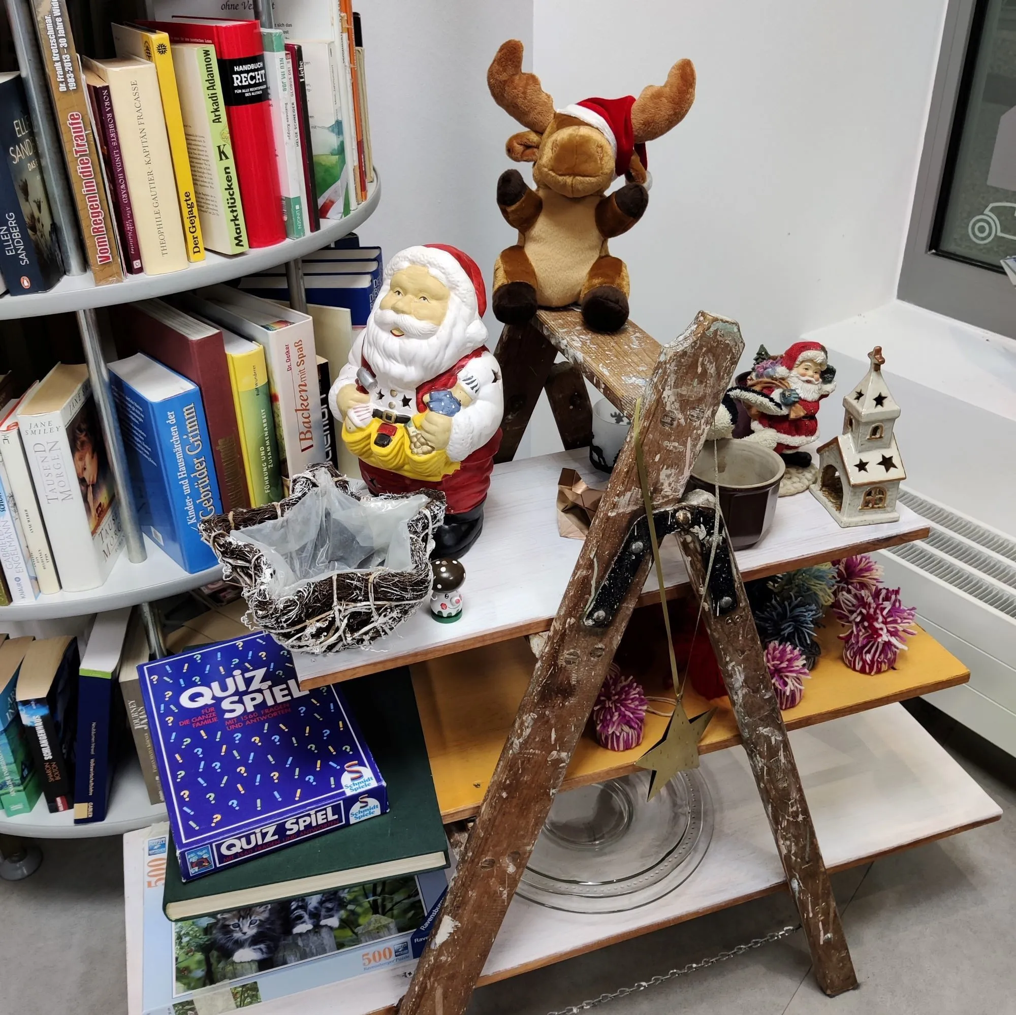 Advent, Advent … Es weihnachtet sehr im „täglich rausgeputzt – unser Laden fürs Beraten“ (Hainstraße 17a). Im Tauschmarkt warten weihnachtliche Figuren und Dekoration auf neue Besitzer/-innen. Gern können Sie auch weitere Stücke vorbeibringen.