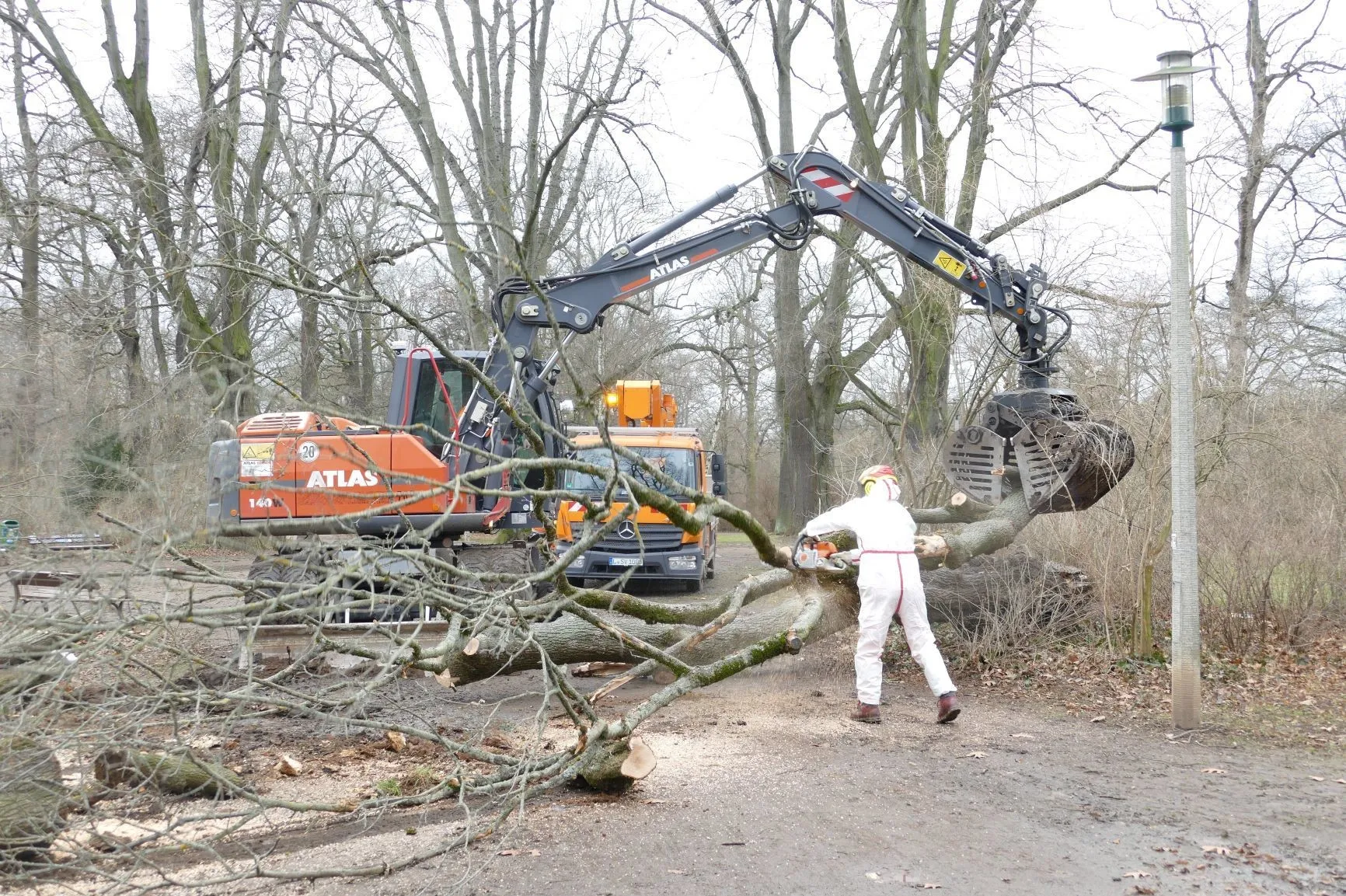 Weiterhin pfeift Sturmtief Nadia mit Böen zwischen 60 und 70 km/h über Mitteldeutschland. Unsere Mitarbeiter/-innen der Abteilung Grünanlagen arbeiten unter Hochdruck daran, entstehende Schäden zu beseitigen. Besonderer Fokus liegt hierbei auf der Beseitigung potenzieller Gefahren für Verkehr und Personen, wie etwa herabgefallene Äste oder umgestürzte Bäume.