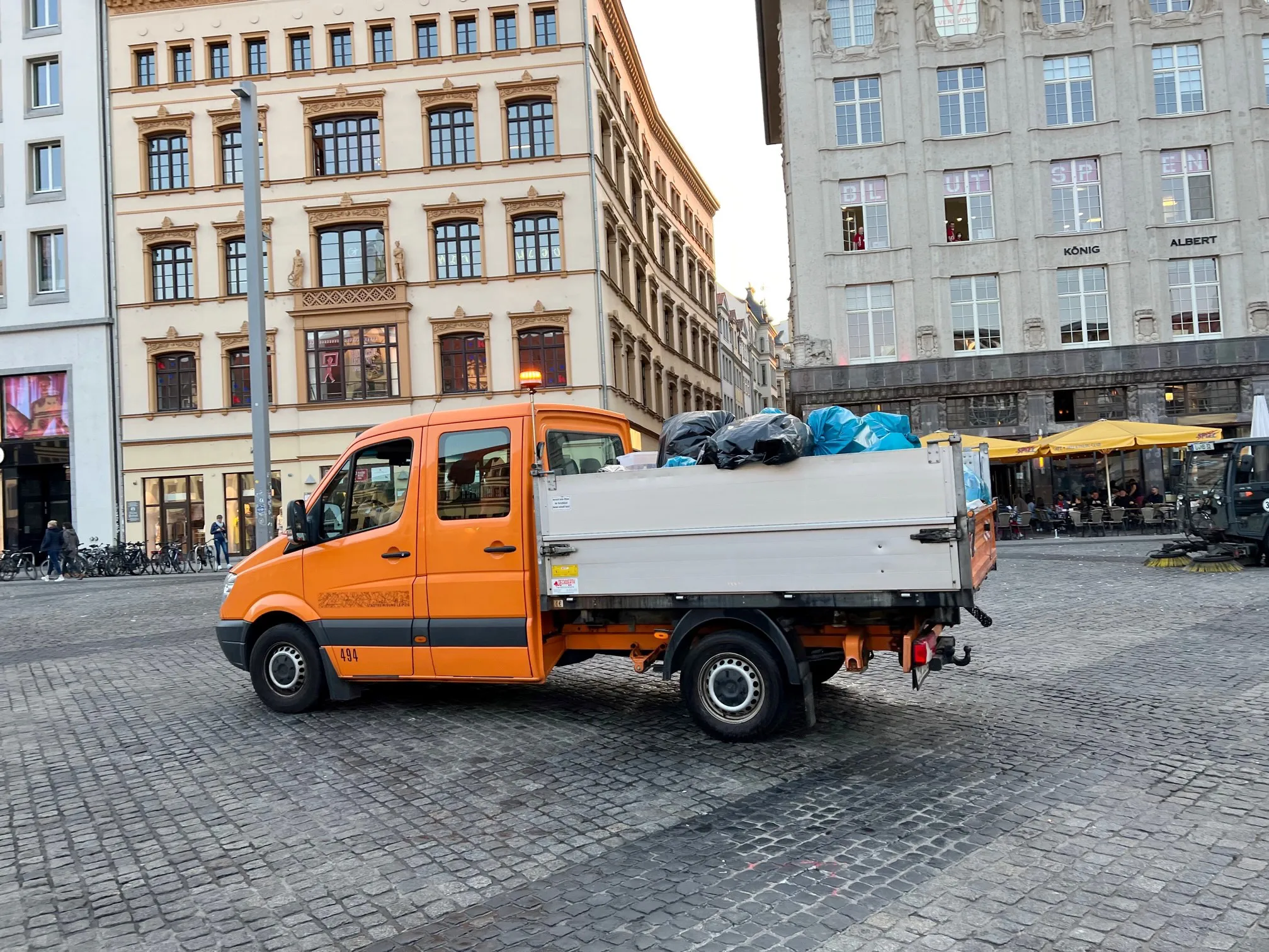 Während des gestrigen Fußballspiels von RB Leipzig gegen die Glasgow Rangers (28.4.22) hieß es auch für uns Anpfiff. Sechs Mitarbeiter/-innen waren bis 22 Uhr im Sondereinsatz. Sie reinigten die Innenstadt vom Markt über den Brühl, den Richard-Wagner-Platz und den Goerdelerring von den Hinterlassenschaften der feiernden Fußballfans. Auch nach dem Fanmarsch von der Pfaffendorfer Straße zur Jahnallee und zurück war ein Reinigungstrupp eingesetzt.
